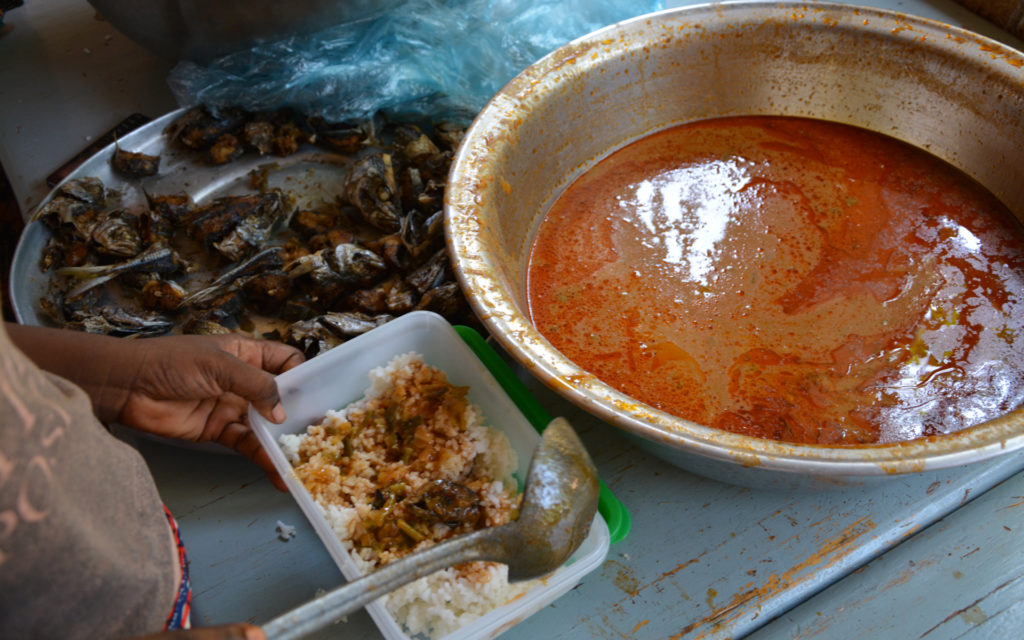 Sans cette aide, ces élèves vulnérables n’auraient accès qu’au seul repas familial du soir. Nous avons triplé le nombre d’élèves soutenus cette année par rapport à 2020. Le menu varie chaque jour et est composé d’une base de riz avec une sauce et des légumes agrémenté selon les jours de viande ou de poisson. Chaque jour ce sont prêt de 500 repas qui sont servis à l’ensemble des élèves de cette établissement qui pratique l’inclusion d’enfants mal-entendants.